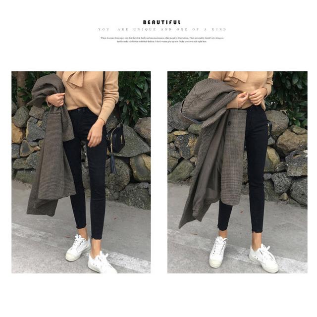 スッキリとしたレッグラインを見せるスキニーパンツは