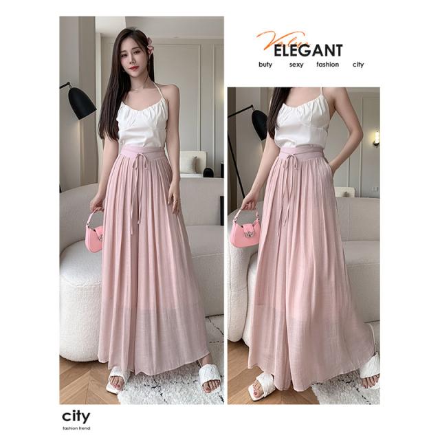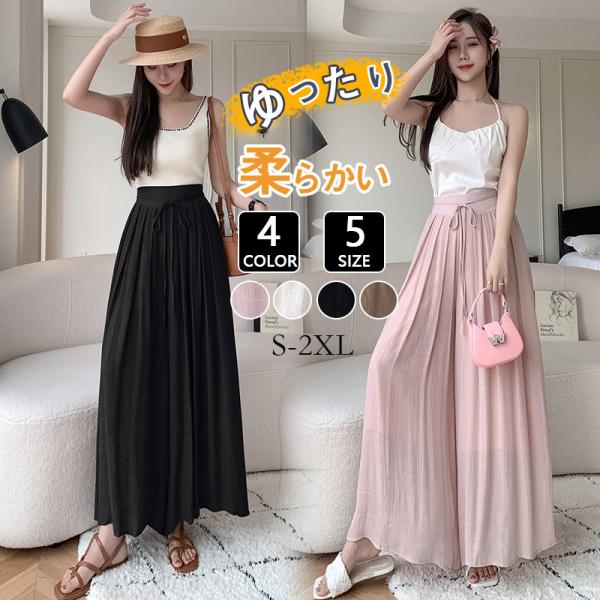 レディース スカーチョ ガウチョパンツ ワイドパンツ ボトムス スカンツ ロング おしゃれ シンプル ゆったり はきやすい かわいい 涼しげ 柔らかい