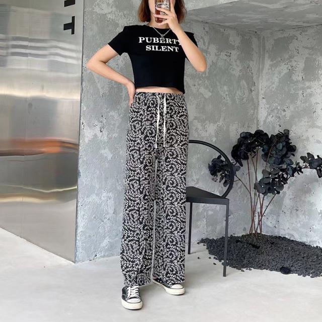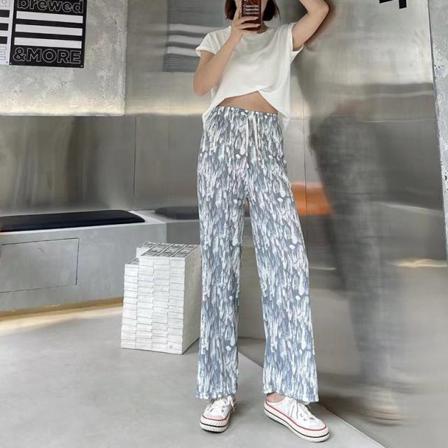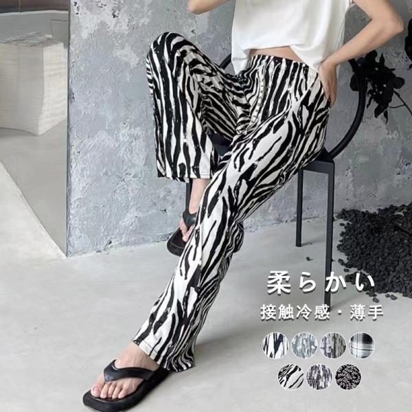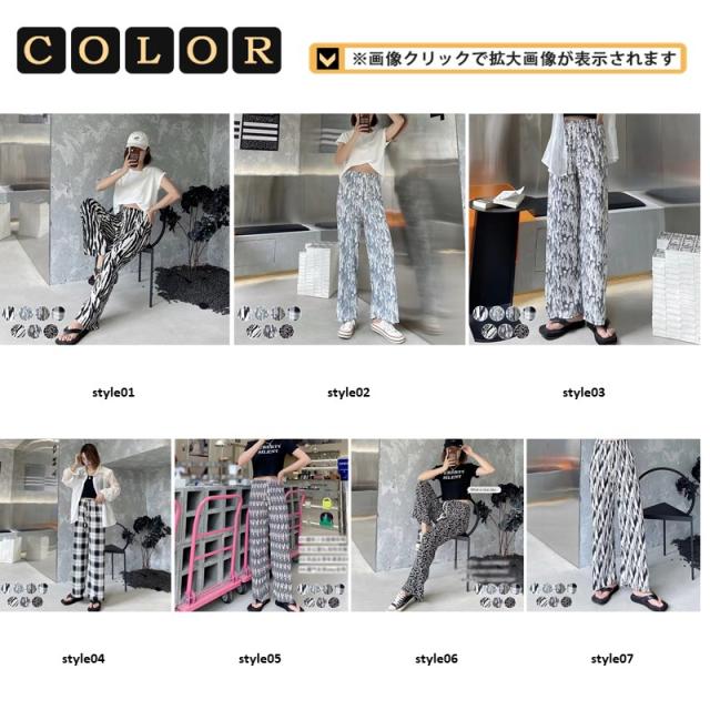 \2点で10%OFF!/ワイドパンツ プリントイージーパンツ 柄パンツ 総柄 リラックスパンツ レディース カジュアル 接触冷感 ひんやり 涼しい 薄手 夏用