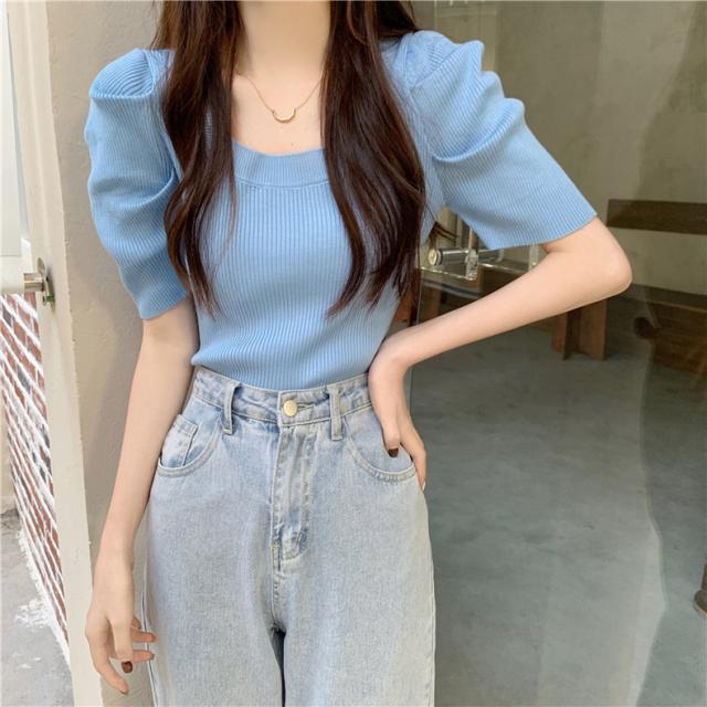 【関連キーワード】パワーショルダーサマーニット レディース リブニット サマーニット パワショル パワーショルダー オフィスカジュアル 半袖 五分袖 パフスリーブ トップス 無地 ニットシャツ 着痩せ Tシャツ 可愛い 20代30代40代50代 通勤 通学 新品 大人気 肌着 春夏 春用 夏用