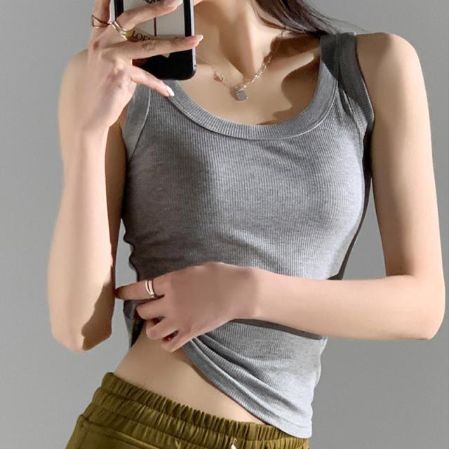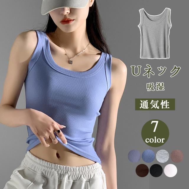 リブタンクトップ キャミソール レディース インナー トップス ノースリーブ Uネック 通気性 吸湿 一部即納