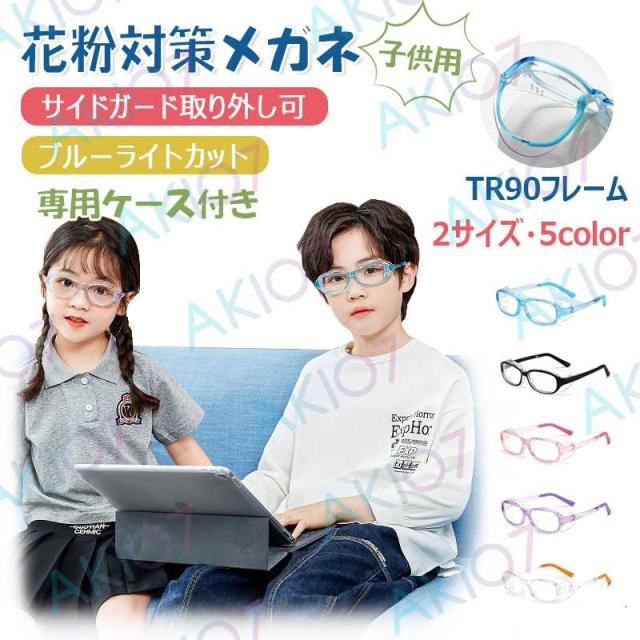 【子供用・メガネストラップ付】花粉防止メガネ 花粉メガネゴーグル ドライアイ対策 鼻パッド付 TR90フレーム サイドガード取り外し可 キッズ用 女の子 男の子 花粉眼鏡 曇らない 曇り対策 防塵/粉塵/飛沫花粉防止 ブルーライトカット 花粉症 めがね おしゃれ 紫外線