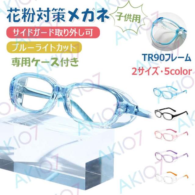 【キッズ花粉メガネ】飛沫防止 防曇 ゴーグル ドライアイ対策 鼻パッド付 TR90フレーム サイドガード取り外し可 キッズ用 女の子 男の子 花粉眼鏡 曇らない 曇り対策 防塵/粉塵/飛沫花粉防止 ブルーライトカット 花粉症 めがね おしゃれ 紫外線