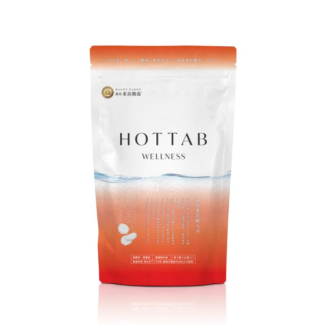 | 商品説明 | 【リニューアルしたホットタブ重炭酸入浴剤】 重炭酸入浴剤ホットタブが「HOT TAB WELLNESS」として生まれ変わりました。 ホットタブ 史上 最高濃度重炭酸、より無添加の品質を向上させた重炭酸入浴剤です。 ビタミンCが残留塩素を瞬間中和し、脱ケミカル入浴が可能になりました。 【重炭酸入浴は30分以上の長湯がおすすめです】 36℃〜41℃のぬるめのお湯に、約160Lに3錠を目安にご使用ください。 重炭酸の溶けたお湯にゆったり15分以上(最適は30分以上)浸かる「重炭酸温浴法」がおすすめです。 体の芯から隅々まで温まり入浴後も持続します。 【重炭酸温浴法のポイント】 ドイツの療養泉や大分県長湯温泉の天然炭酸泉のpHを調べると、6.7〜7.1と「中性」を示します。 中性pHの中では炭酸ガスが存在できませんので、その炭酸ガスのほとんどは「重炭酸イオン」に変化し、天然炭酸泉の温浴・洗浄効果を高め、体を温めているものと考えられています。 【肌の弱い方や赤ちゃんにも】 ホットタブは、余計なものを入れない、無色透明の優しいお湯を作りあげます。 塩素を中和し、香料・着色料も含みません。 濃度が持続し、後から入ったご家族も追い焚きで温浴効果をお楽しみいただけます。 またホットタブが溶けたお湯はカルキ中和効果でpHが中性になります。 そのため、肌への刺激が少なく、柔らかい湯ざわりを実現しています。 お肌の弱い方や赤ちゃんでもご利用いただくことが可能です。 |
