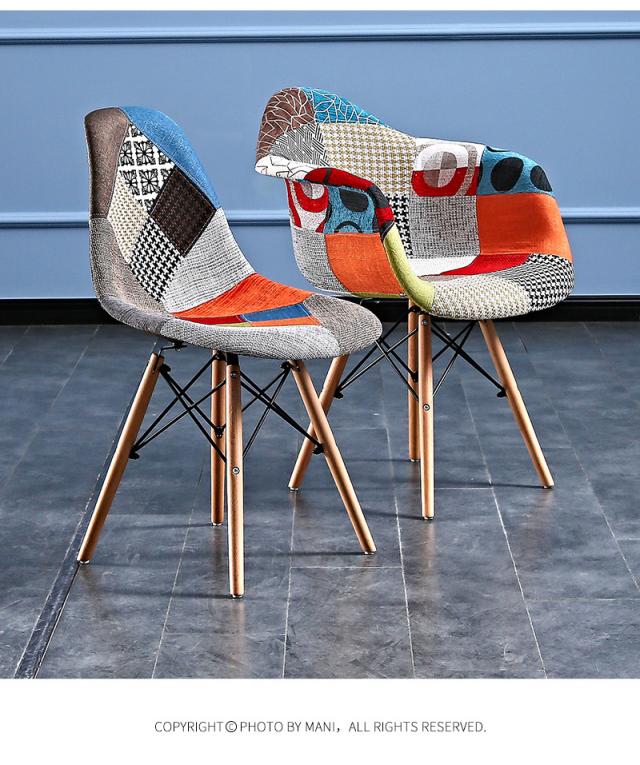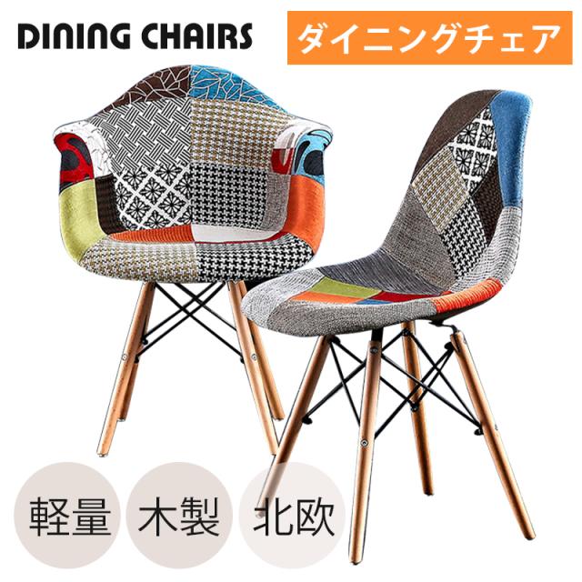 ダイニングチェア イームズチェア 椅子 肘掛け チェア 軽量 ファブリック 布 パーソナルチェア 木製 北欧 カラフル パッチワーク 背もたれ リプロダクト