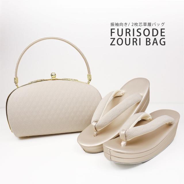 草履バッグセット 上品無地感 キルティング生地が美しい フォーマル クリーム ベージュ オフホワイト ふんわり フェミニン uzouri96-2