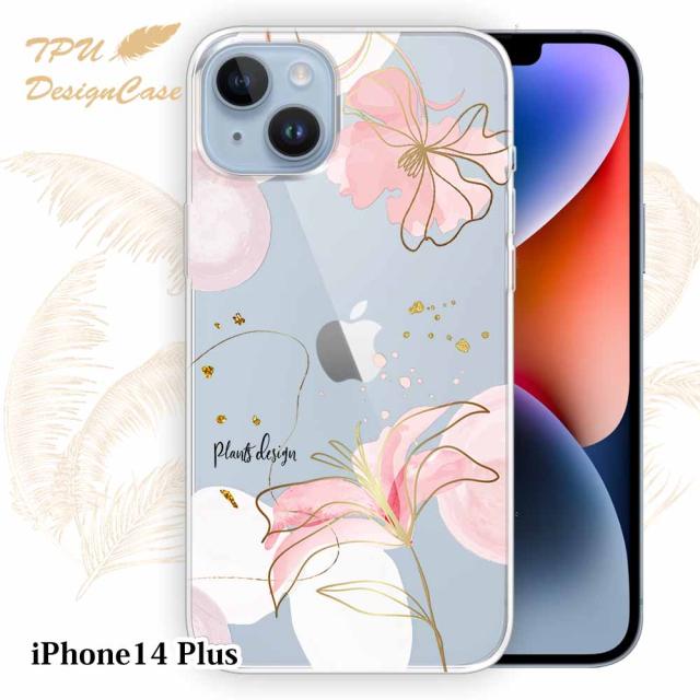 【14時までの注文で当日発送】 iPhone14 Plus ソフトケース TPU クリアケース 透明 アイフォン14プラス ケース おしゃれ カラフル かわいい 花 花柄 プランツデザイン No.4