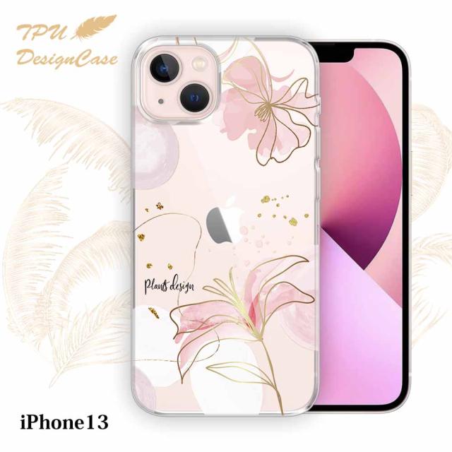 【TPUケース】 iPhone13 ソフトケース TPU クリアケース 透明 アイフォン13 ケース おしゃれ カラフル かわいい 花 花柄 プランツデザイン No.4