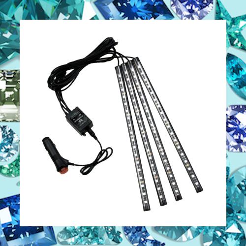 発光色:フルカラー(RGB) 電源:シガー接続 ON/OFF操作 電圧:12V DC パワー:15W(3.75W /ライト) ライト数量:4個 LED配線サイズ:約2 x 150cm + 2 x 200cm シガーライターの配線サイズ:75cm 作業温度: -20 ~ 60℃ リモート機能:オン/オフ、カラーを変更、点滅モート、点滅速度を変更 多種の色は選んで、異なる周波数のが明滅してあなたの車にいっそう雰囲気があらせます すべての製品はすべて働くことができる4つのライトの条があって、全部で48のライト、とてもつやがあって、簡単で短い長さはそれあなたの姿勢に影響することはでき(ありえ)ないです ご注意: 本製品の電源電圧はDC12Vです。 DC 24V/AC 220Vに接続しないでください。 セット内容: 4x車内装飾用LEDライト 1xシガーライター 1xリモコン