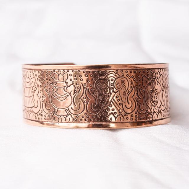 チベット密教 吉祥文様のメタルバングル フリーサイズ / ブレスレット、バングル、チベット密教、吉祥文様、ネパール、チベット仏教 アクセ 【インドとアジアのアクセサリー