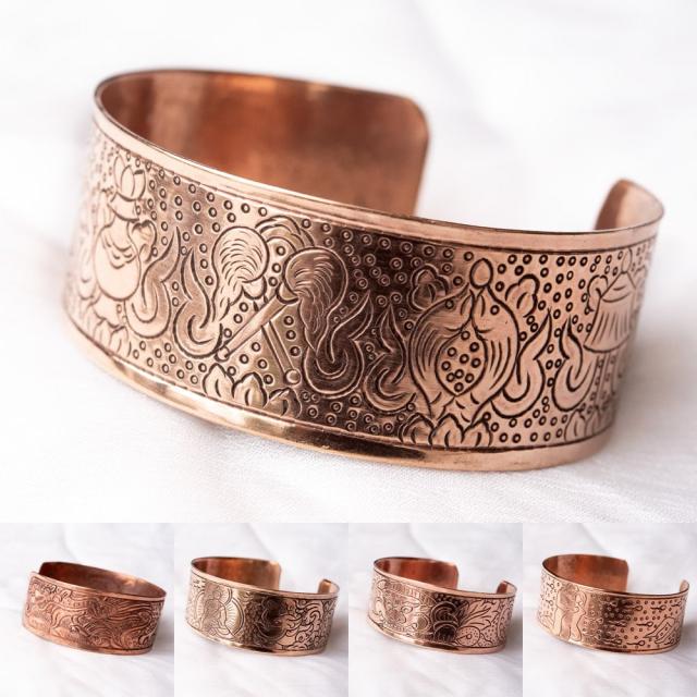 チベット密教 吉祥文様のメタルバングル フリーサイズ / ブレスレット ネパール チベット仏教 アジア チベタン アクセサリー ストーン 天然石 真言 エスニック インド アンクレット ピアス リング ビンディー