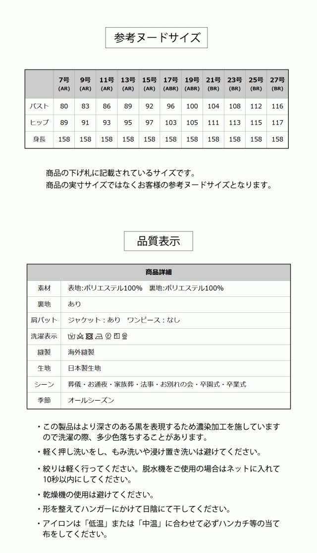 洗える ブラックフォーマル アンサンブル7号〜27号