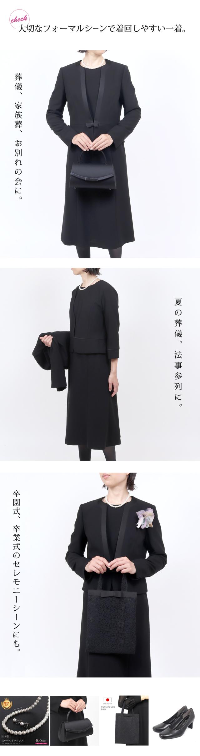 喪服としてだけでなく、お手持ちのコサージュをつけて、お子様の卒園式や卒業式などのママスタイルとしてもおすすめです。