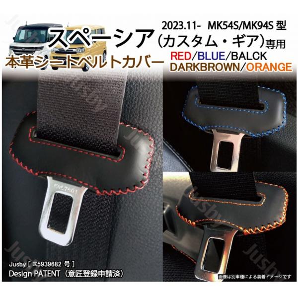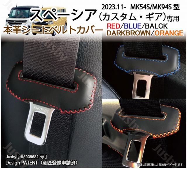 スペーシア スペーシアカスタム用 MK54S MK94S 本皮/本革シートベルトカバー レザーカバー 赤 黒 青 ドレスアップ 異音 傷防止 内装パーツ アクセサリー
