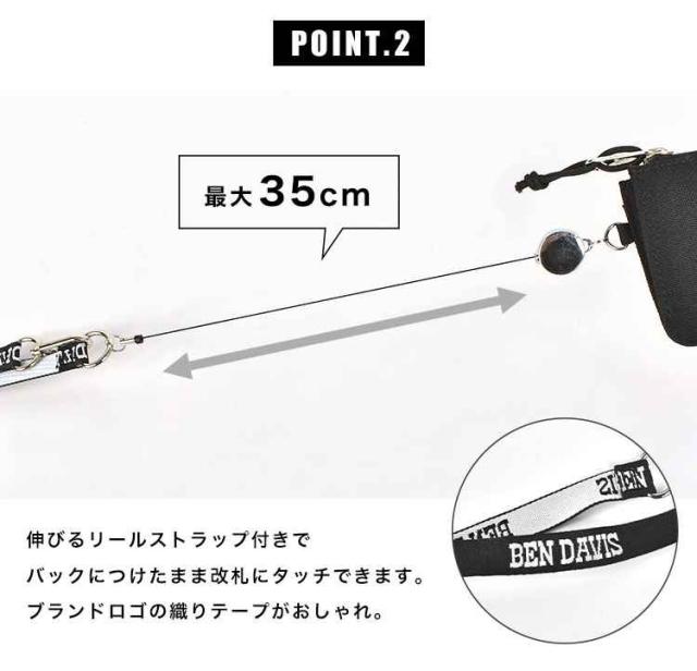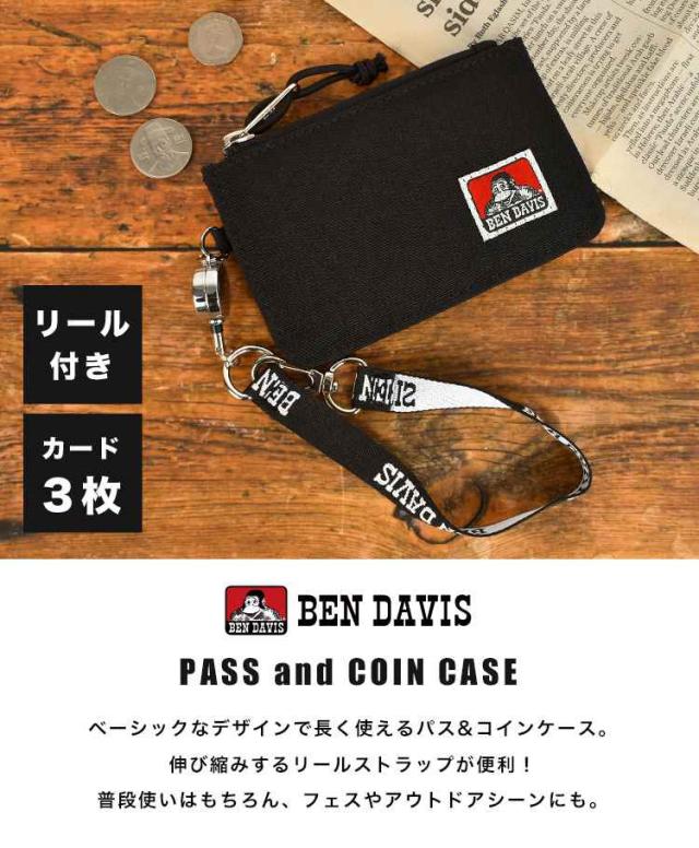 パスケース BEN DAVIS ベンデイビス メンズ 男性 定期入れ コインケース 小銭入れ リール付き 定期券 カードケース カード入れ 中学生 高校生 大学生 大人 男子 通勤 通学 ICカード 3枚 シンプル 無地 ストラップ 落ちない 紛失 落下 防止 ブランド BDW-8378 財布 小物入れ