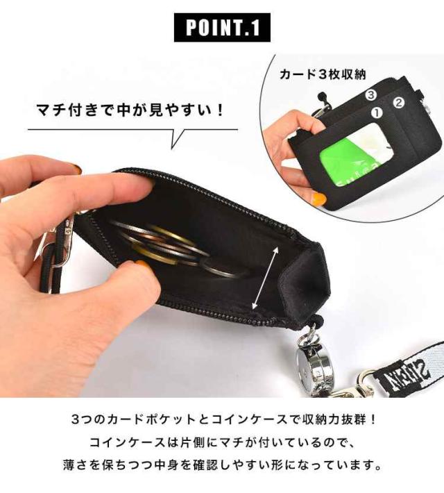 ベーシックなデザインで長く使えるパス&コインケース。 伸び縮みするリールストラップが便利! 普段使いはもちろん、フェスやアウトドアシーンにも。