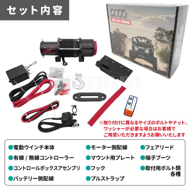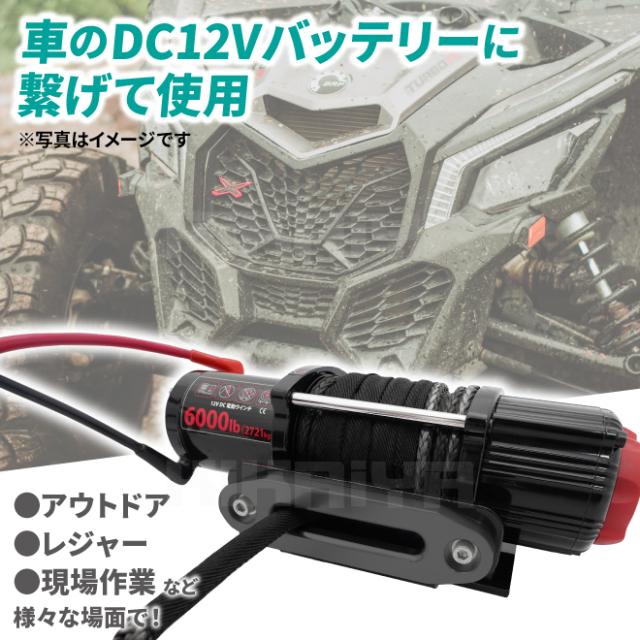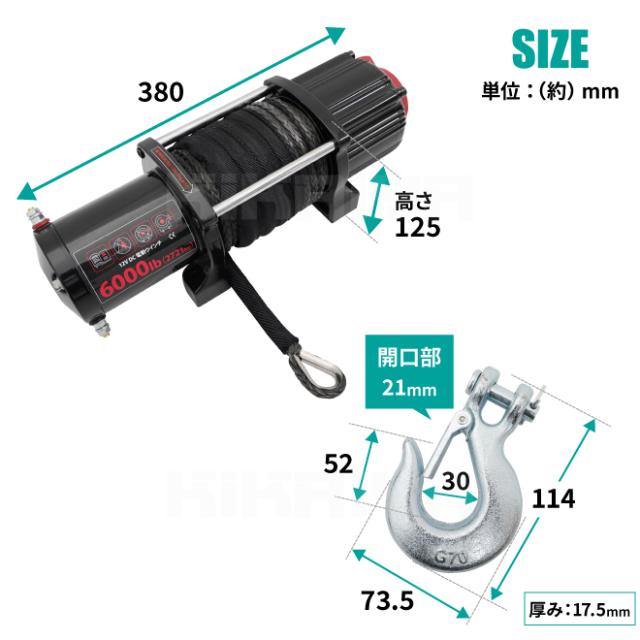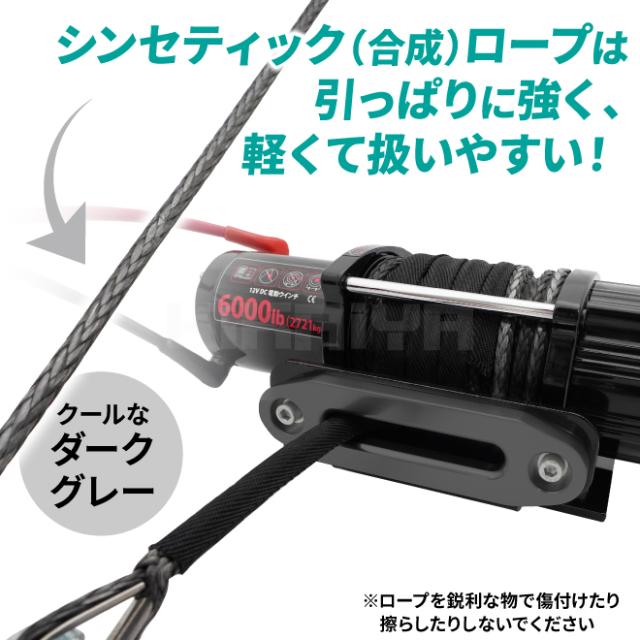 電動ウインチ 12V 最大牽引能力6000lbs 2721kg シンセティックロープ 電動ホイスト 軽量 7.45kg 無線/有線コントローラー オフロード ウィンチ KIKAIYA