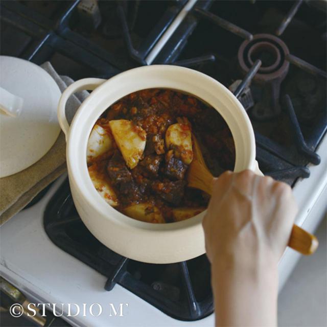 studio m’ スタジオエム ナヴァラン 6号 深鍋(土鍋 浅い 浅め 調手鍋 耐熱陶器 食卓 に そのまま 出せる 鍋 おしゃれ スタジオM エム モダン 和モダン 炊飯 ごはん 3合炊き ごはん鍋)【F】 1-2W