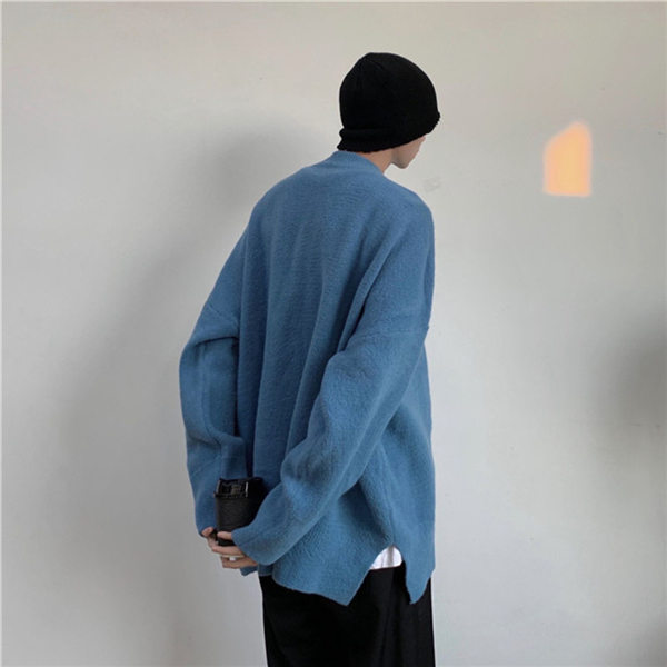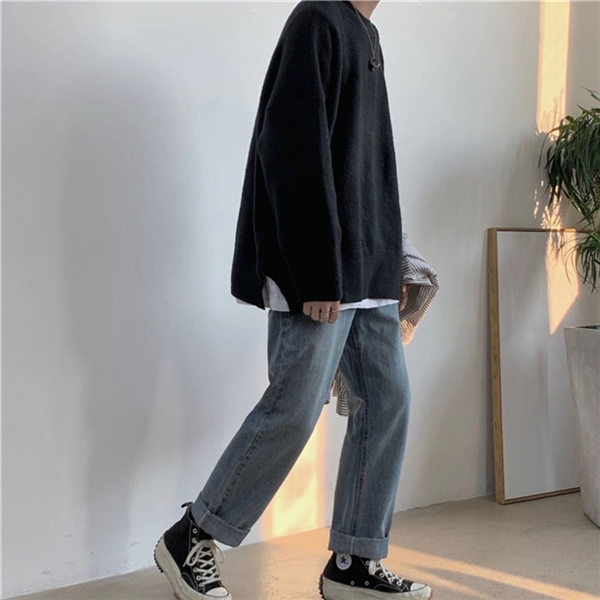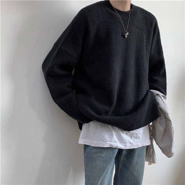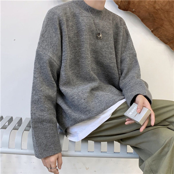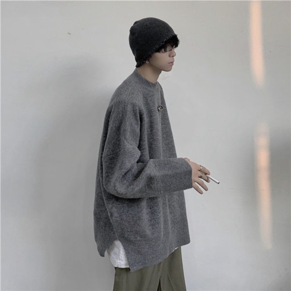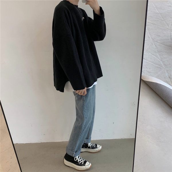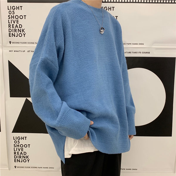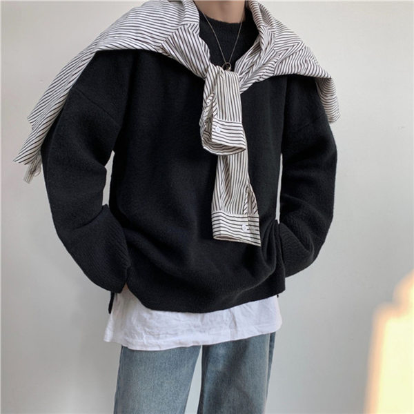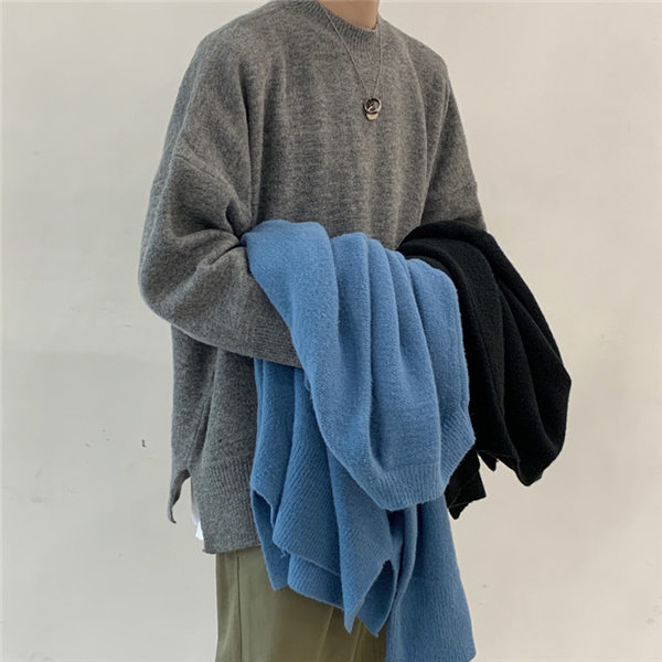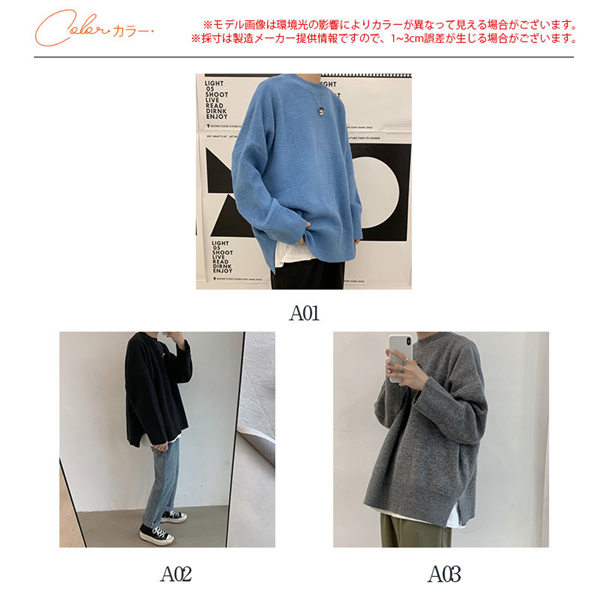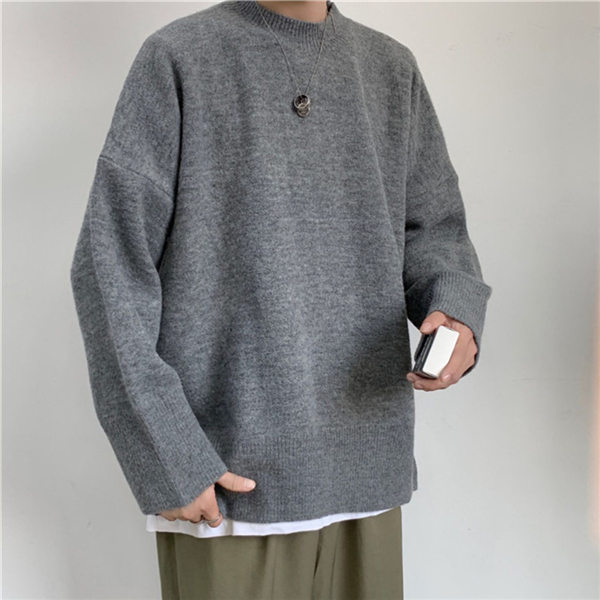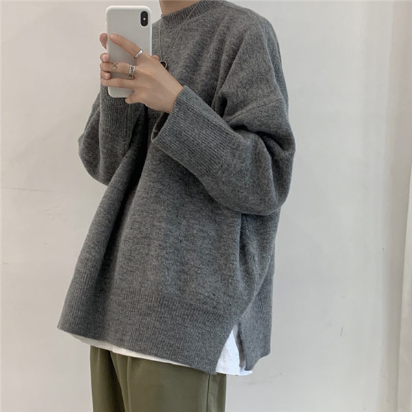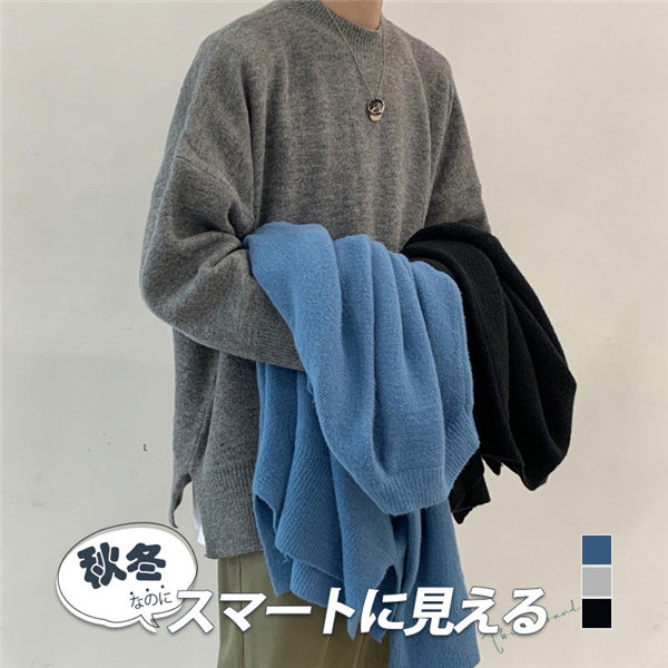 【~4/20まで P2倍+限定クーポン】 ニットセーター メンズ Tシャツ 秋冬 長袖 ゆったり 厚手 ニット プルオーバー クルーネック サイドスリット 暖かい 重ね着 カジュアル ビジネス