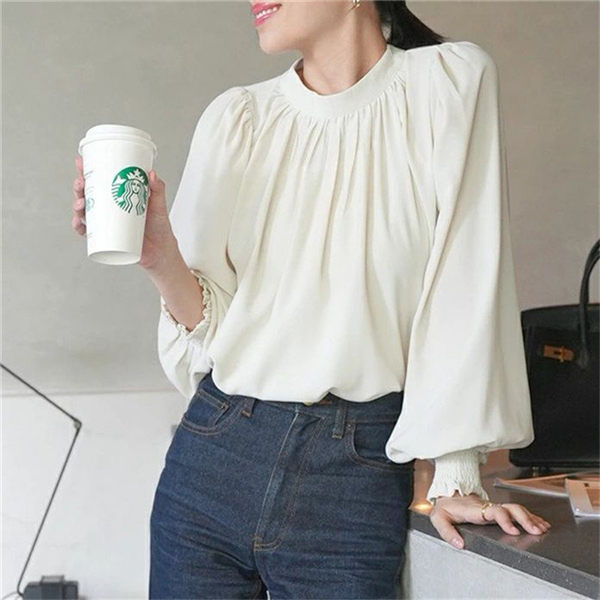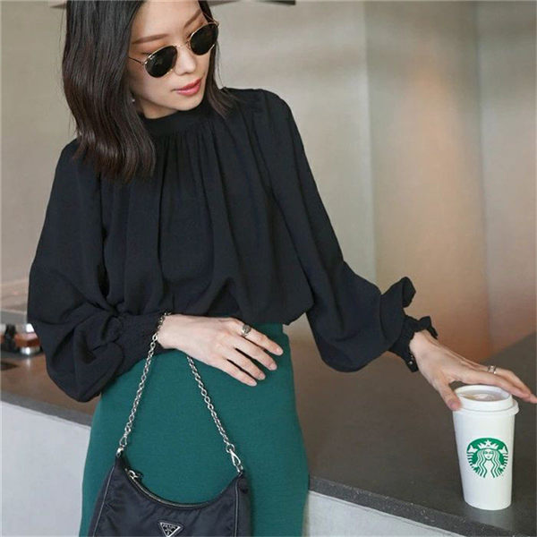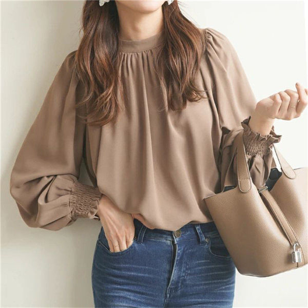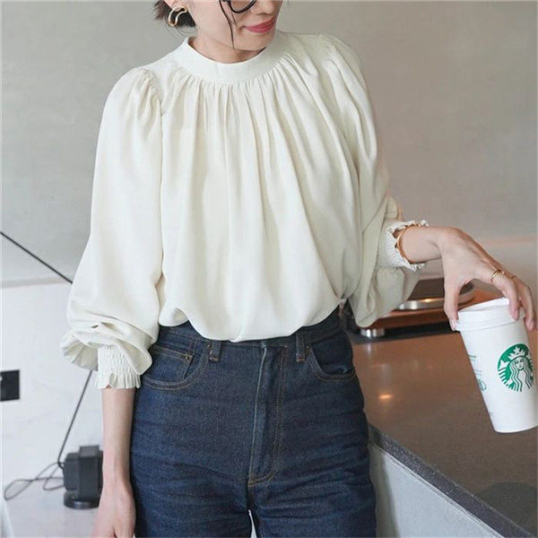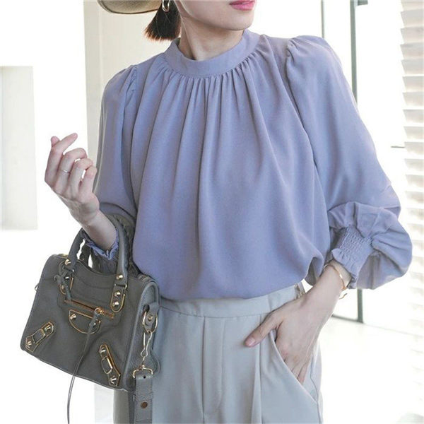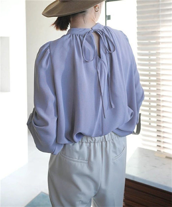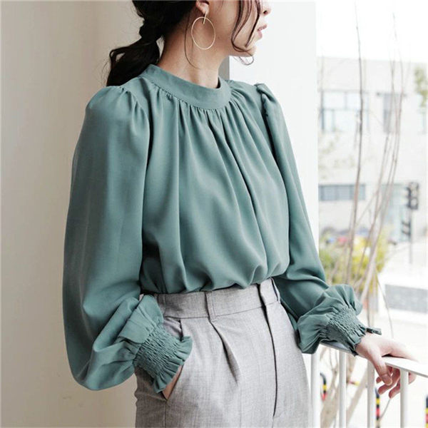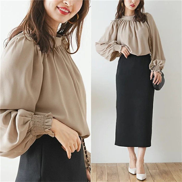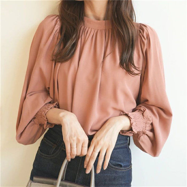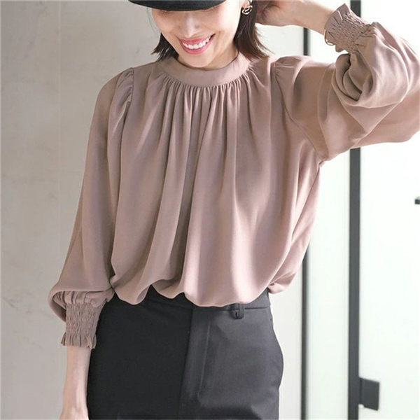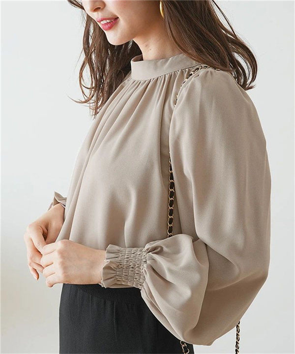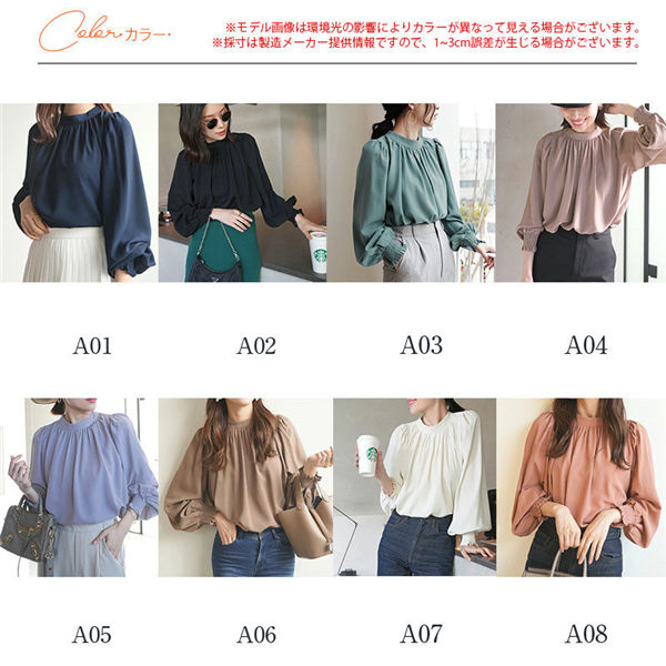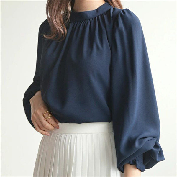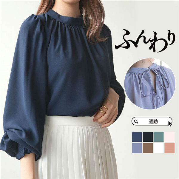 【~4/24まで P10倍+限定クーポン】 爆売中 ブラウス シャツ レディース 長袖 春コーデ シフォン 通勤 面接 ゆったり プチハイネック バルーン袖 ふんわり 女子会