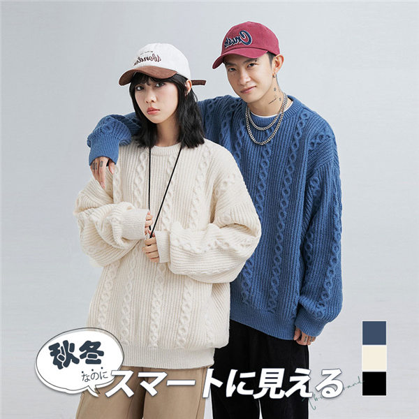 【~4/20まで P2倍+限定クーポン】 ニットセーター メンズ Tシャツ 秋冬 長袖 ゆったり 厚手 ニット プルオーバー クルーネック アメカジ 暖かい カジュアル ビジネス オーバーサイズ