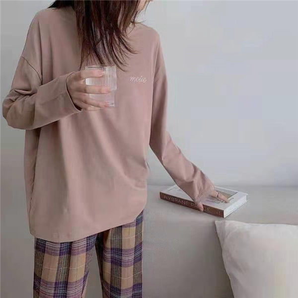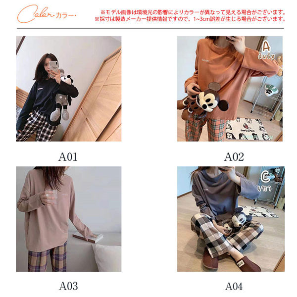【~4/30まで P5倍+限定クーポン】 パジャマ レディース ルームウェア セットアップ 上下セット 長袖 ゆったり 春秋 薄手 通気 Tシャツ 長ズボン チェック柄 ナ