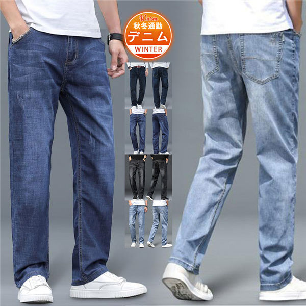 【水曜日まで!10%クーポン配布中】 デニムパンツ メンズ ストレートパンツ ジーンズ ストレッチ ゆったり 厚手 カジュアル 通勤 シンプル ビジネス ボトムス 秋冬 着痩せ
