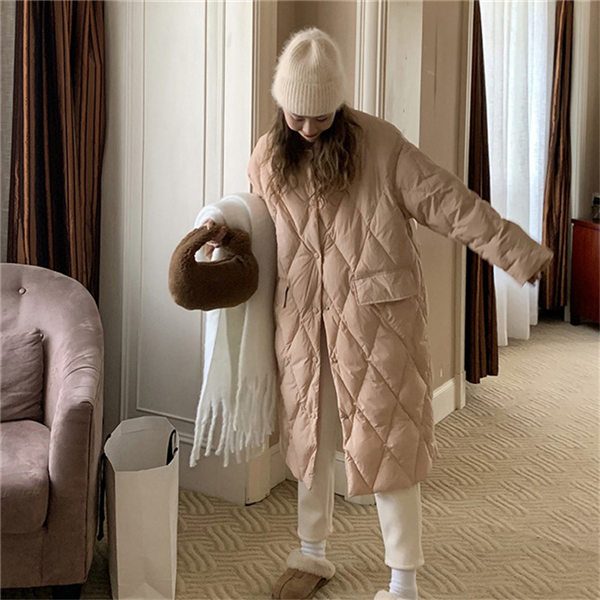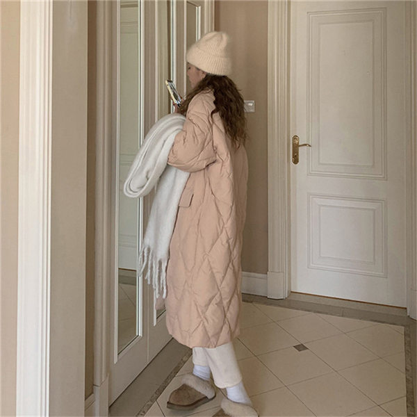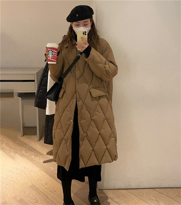 【水曜日まで!10%クーポン配布中】 ダウンコートレディース 冬服 ロング丈 折襟 ボタンダウン 無地 秋冬 ダウンジャケット キルティングダウン 厚手 膝丈 ゆったり 暖かい 保温 防寒 羽織り