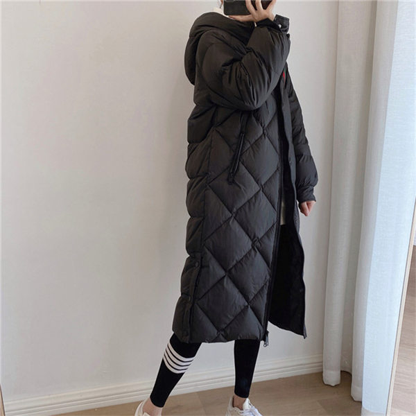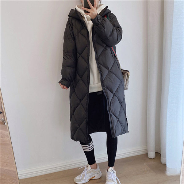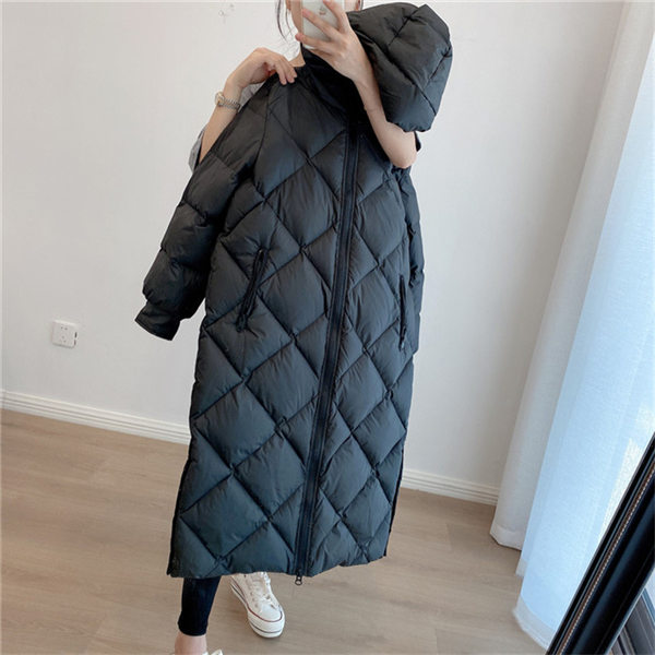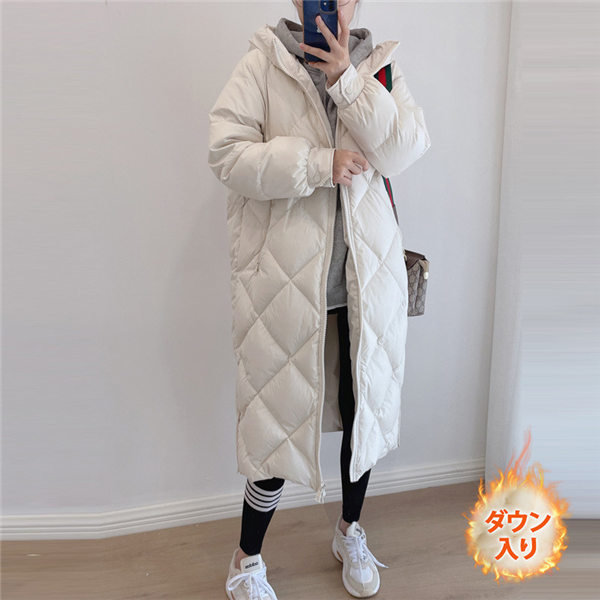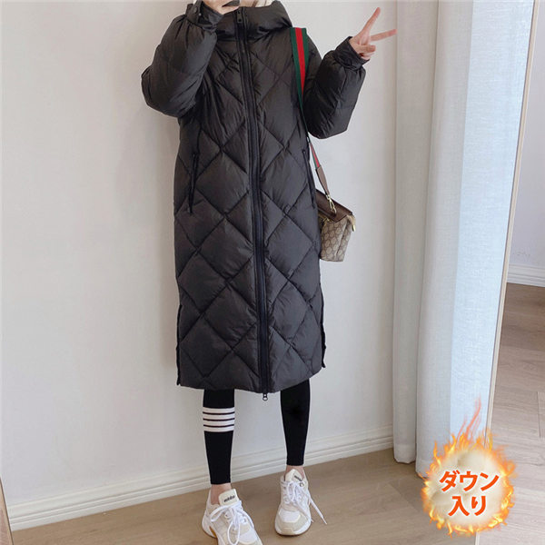 【~4/30まで P5倍+限定クーポン】 ダウンコート レディース 冬服 ロング丈 フード付き キルティングダウン ジップアップ 無地 秋冬 細身 着痩せ ひざ丈 暖かい 保温 防寒 羽織り アウター