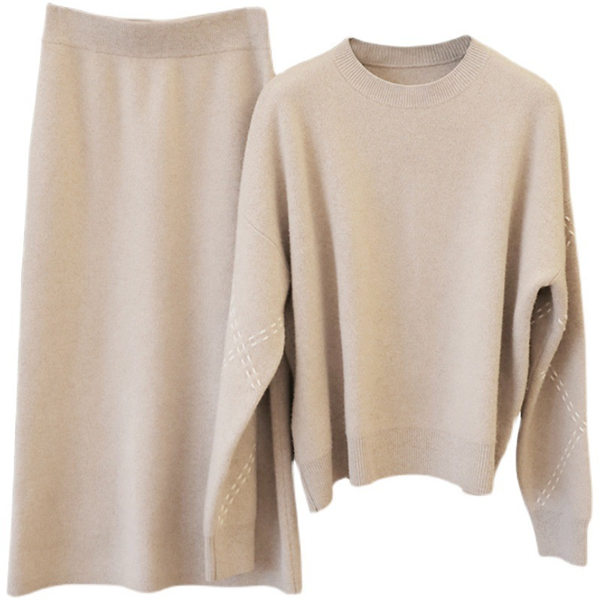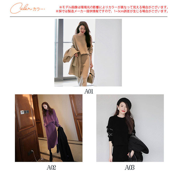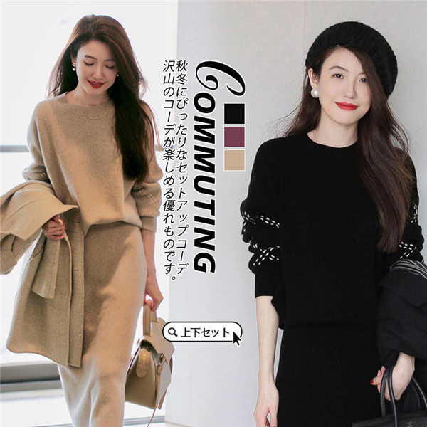 【水曜日まで!10%クーポン配布中】 ニット セットアップ レディース 長袖 ニットセーター 2点セット 上下セット ニットスカート ゆったり ミディアム ミモレ プルオーバー インナー スカート