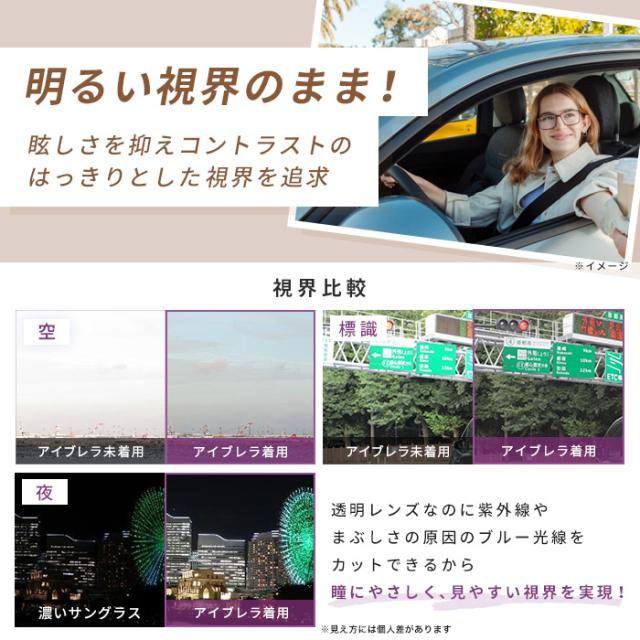 透明レンズなのに紫外線やまぶしさの原因のブルー光線をカットできるから