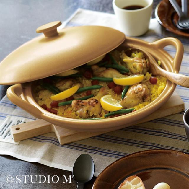studio m’ スタジオエム オムレツパン(浅い 鍋 陶板 陶器 取っ手 浅型 耐熱陶器 おしゃれ スタジオ M エム 直火 ガス コンロ 直火対応 直火可 ガスコンロ オーブン 電子レンジ可)【F】 1-2W