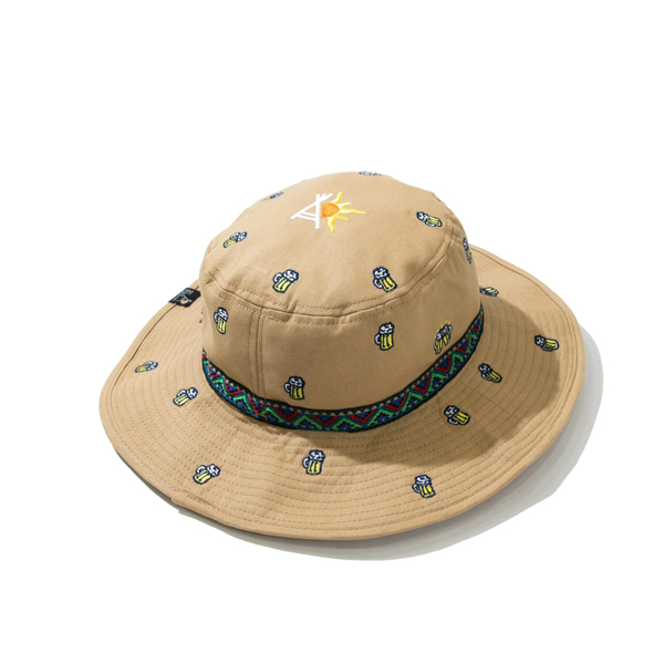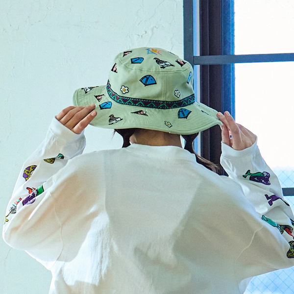 野外フェスやキャンプなど、幅広く外遊びにお使いただける万能ハットです。