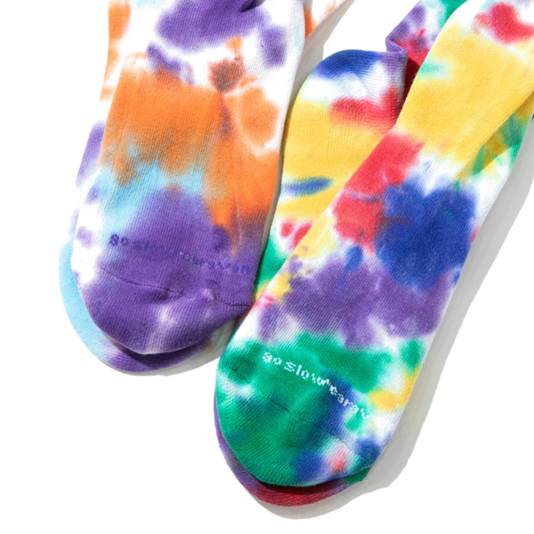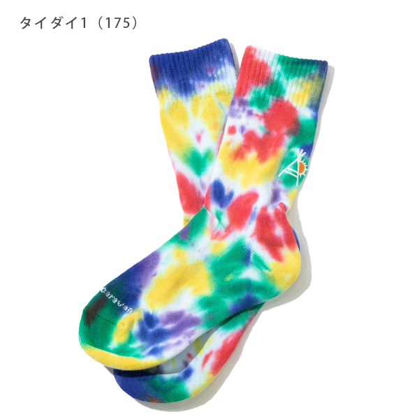 ゴースローキャラバンオリジナルのタイダイソックスが登場☆ ゴースローキャラバンオリジナルのタイダイソックスが登場☆ タイダイ柄の裏パイル仕上げのクルーソックス。 後ろ側のふくらはぎ下部に刺しゅうによるヤグラマーク、 つま先にジャガード織りでgo slow caravanロゴが入っています。 サイズは2サイズご用意しております。 | ||||||