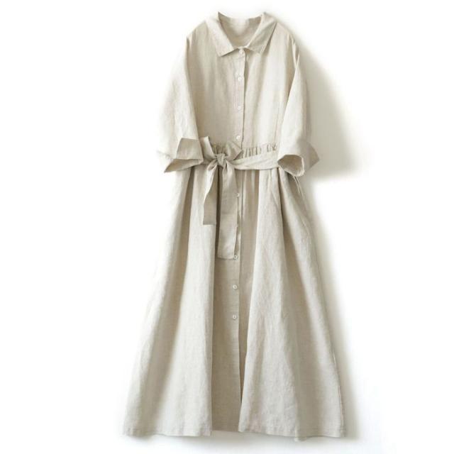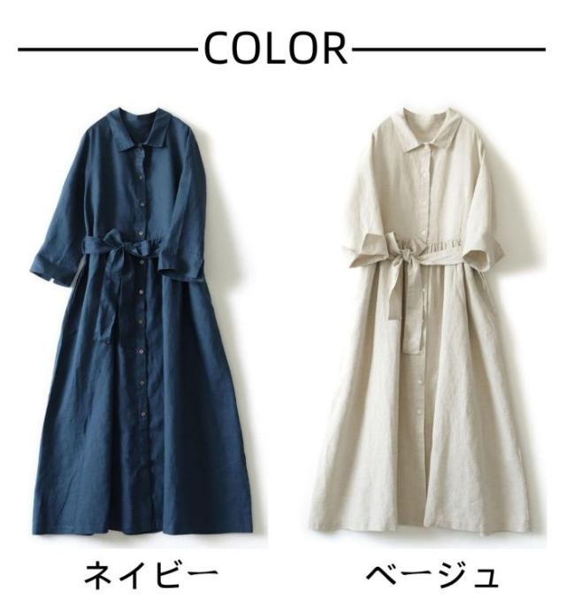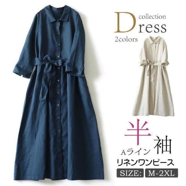 ワンピース レディース 半袖 シャツワンピース 綿麻 無地 ワンピ Aライン 体型カバー きれいめ 春夏