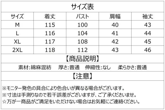 ▼サイズ:M/L/XL/2XL(単位:CM)