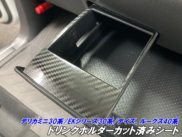 デリカミニ30系/ルークス.デイズ40系/EKシリーズ30系 ドリンクホルダーカット済シート カーボン柄カラー選択 アクセサリー カップホルダー 内装 カスタムパーツ