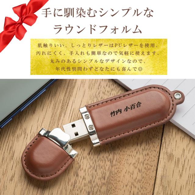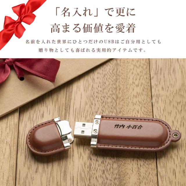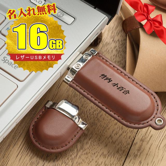 ポイント10倍を開催バレンタイン 名入れ無料 16GB USBメモリ レザー 革製 名前入り ネーム入り 母の日 父の日 入学 卒業 就職 お礼 記念品 お祝い プレゼント