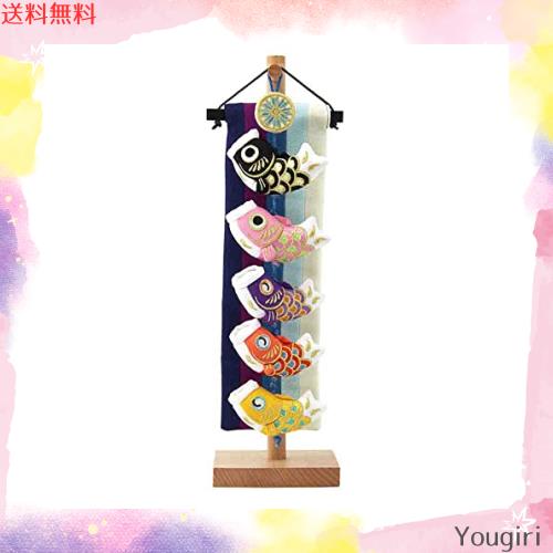 こいのぼり 鯉のぼり 笑鯉 43cm 室内 天然木製台付 ちりめん タペストリー 鯉飾り ミニ 鯉5匹 五月人形 コンパクト 端午の節句 卓上 台付