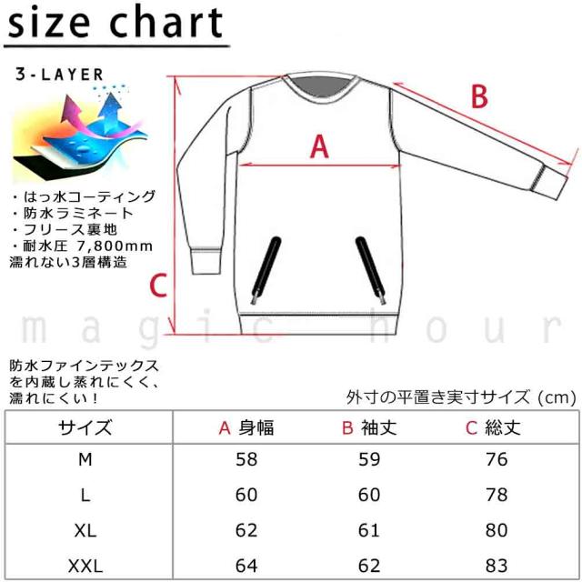 細部のパーツまでこだわったスノーボードブランドが提案する撥水ボンディングトレーナー!今期も大注目のアイテム! はっ水コーティング、防水ラミネーション加工、保温性の高いフリース裏地の3レイヤー仕様で濡れずに暖かい! 耐水圧7800mmの3レイヤーで水や風に強く、ストレッチの生地でスポーツ時の使用でも動作性◎ インナーとしても使いやすいフード無しタイプ、重ね着コーデにもおすすめ!ファスナー付きポケット、首元はリブになっているので着替えもらくらく♪指穴付きの袖など機能性も充実! |