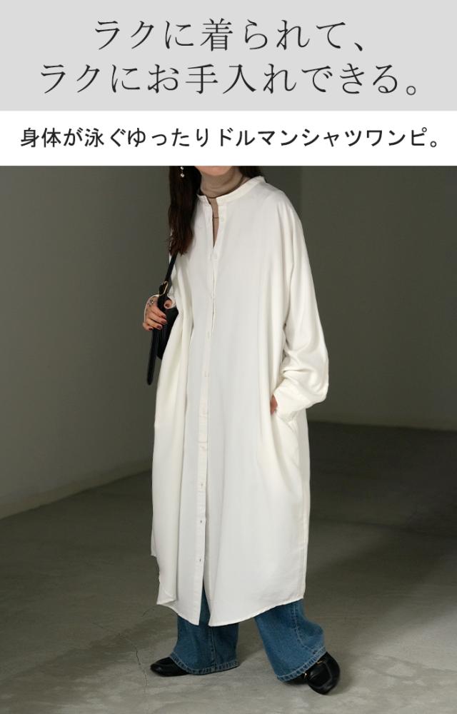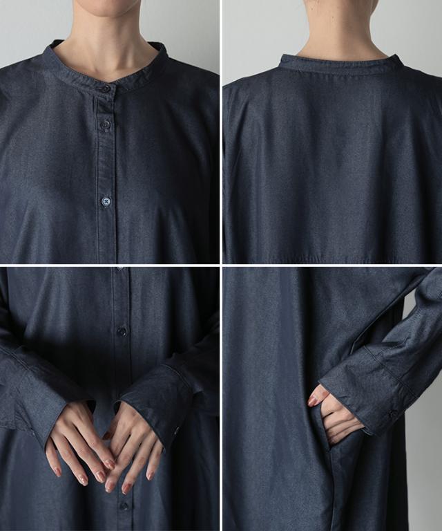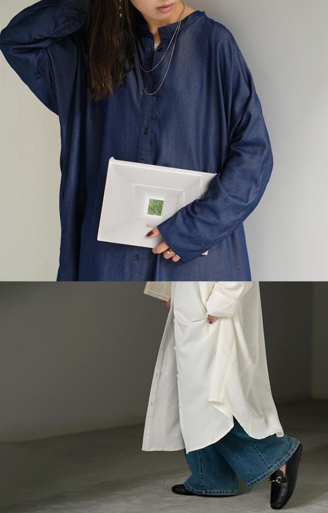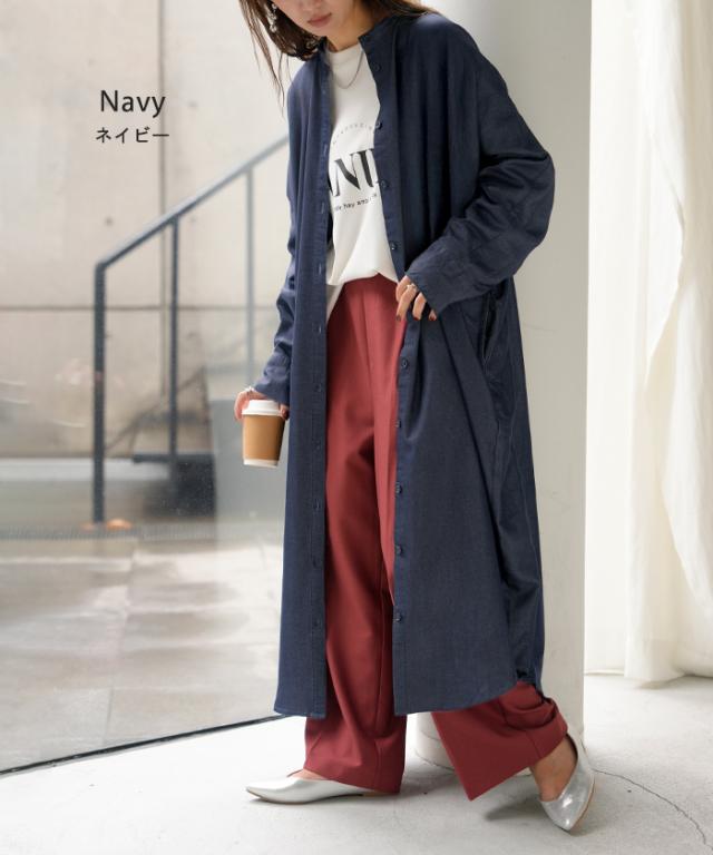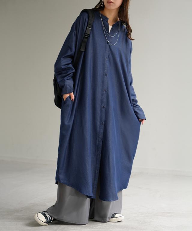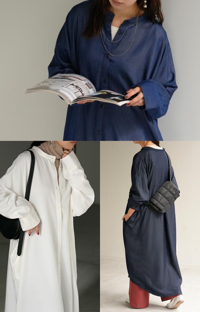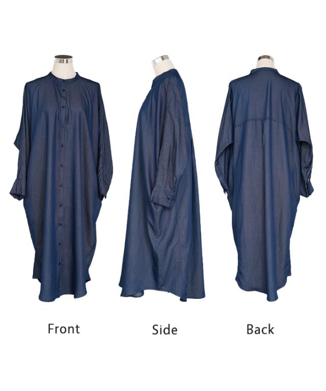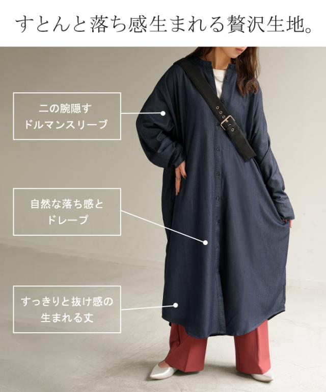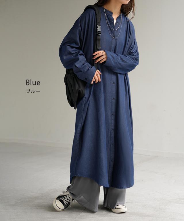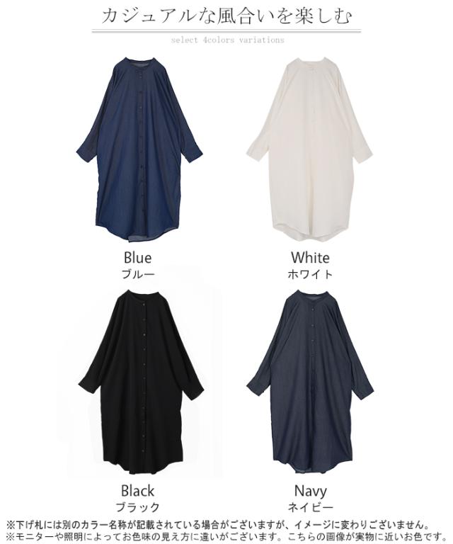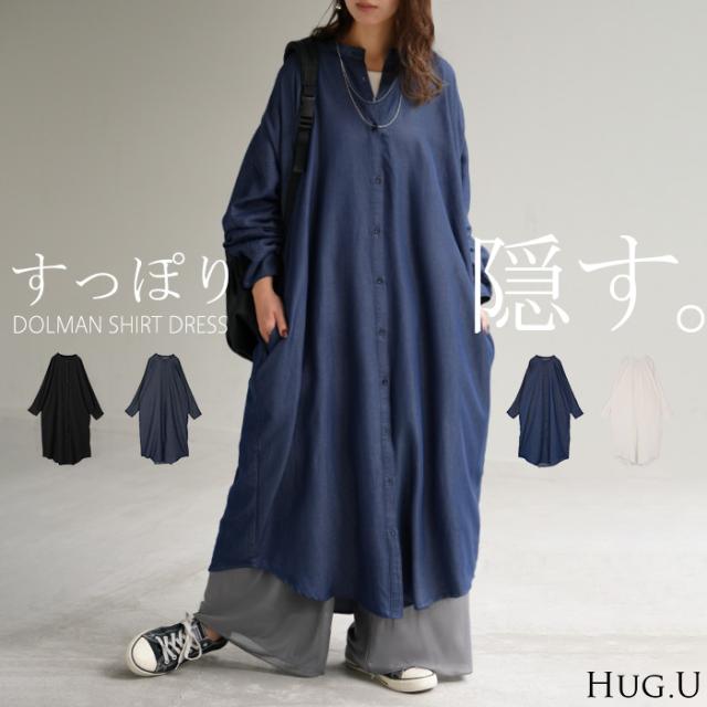 ワンピース シャツワンピース ロング シャツ ダンガリー レディース ロングワンピース ロングワンピ デニムシャツ デニム ノーカラーワンピース ワンピ 着痩せ Aライン マキシ 長袖 ドルマン 羽織 きれいめ 体型カバー 大きいサイズ 春 夏 HUG.U 秋新作