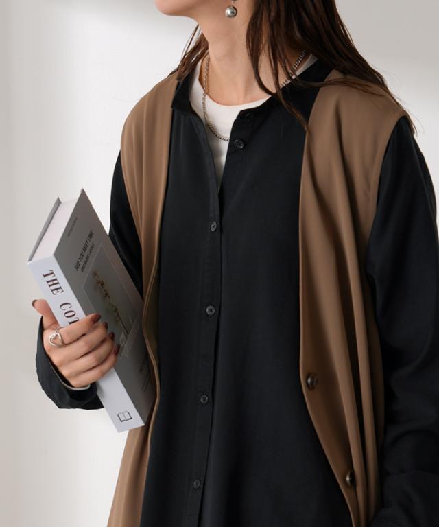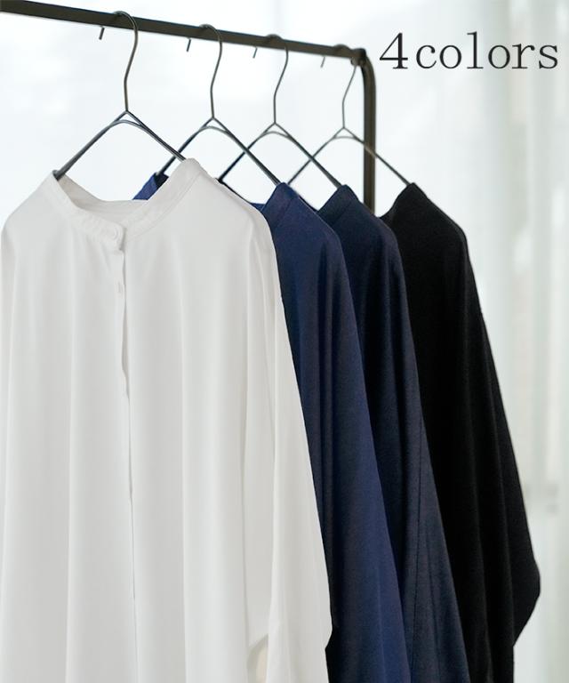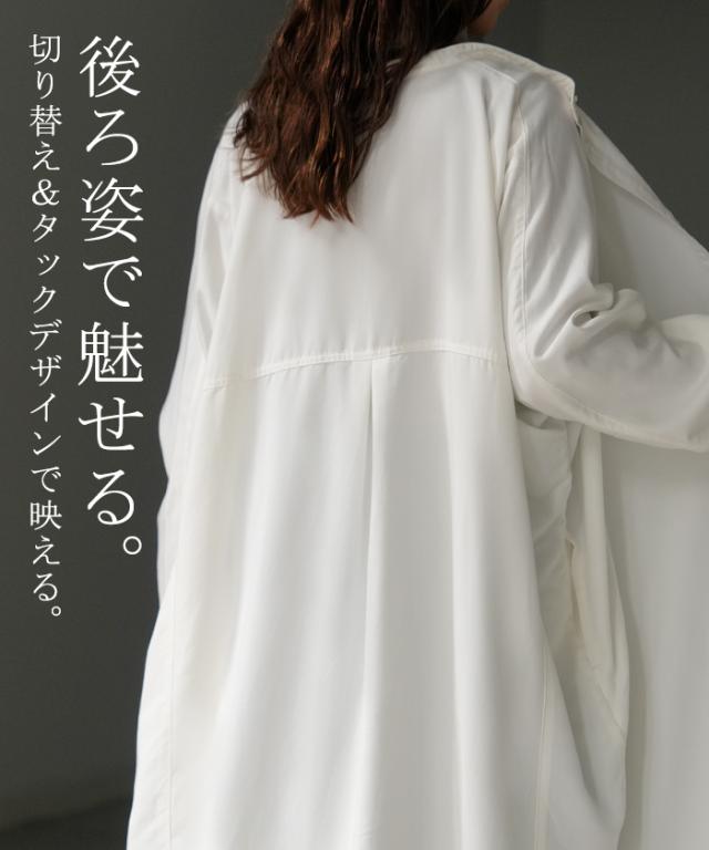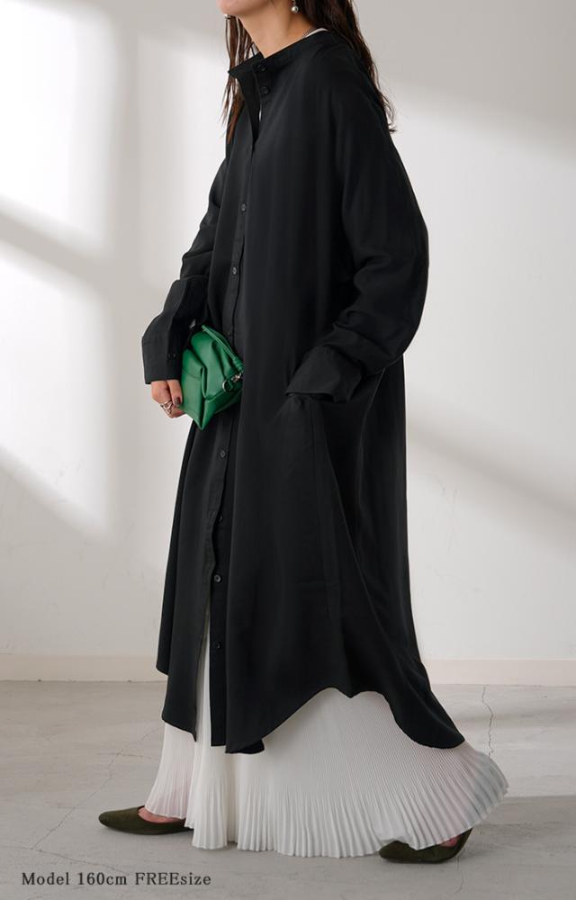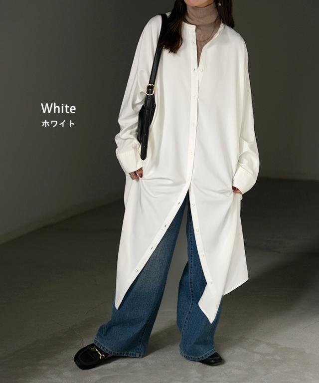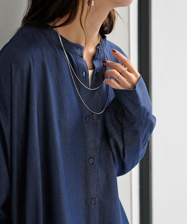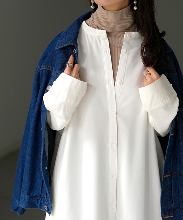 リラクシーな着心地ながらノーカラーデザインで大人っぽさもプラス。