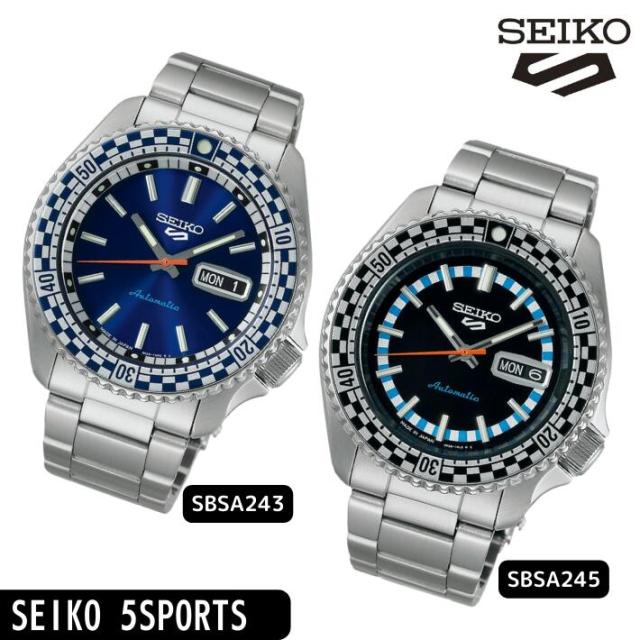 セイコー 腕時計 5スポーツ SBSA243 SBSA245 メカニカル メンズ スポーツ アウトドア ビジネス メタルバンド ファイブスポーツ メンズ シルバー チェッカーフラグ 自動巻き ウォッチ ブランド SEIKO 文字盤 ブルー ブラック 日本製 誕生日 お祝い プレゼント