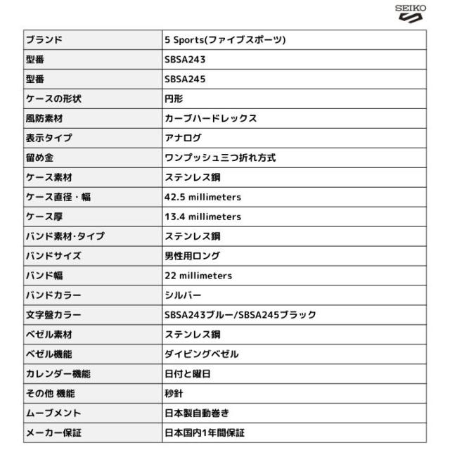 セイコー 腕時計 5スポーツ SBSA243 SBSA245 メカニカル メンズ スポーツ アウトドア ビジネス メタルバンド ファイブスポーツ メンズ シルバー チェッカーフラグ 自動巻き ウォッチ ブランド SEIKO 文字盤 ブルー ブラック 日本製 誕生日 お祝い プレゼント 在庫有り【商品説明】