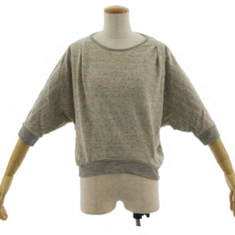 【中古】ヴゼット VOUSETES カットソー スウェット 五分袖 ドルマンスリーブ調 ボーダー ベージュ グレー 茶系