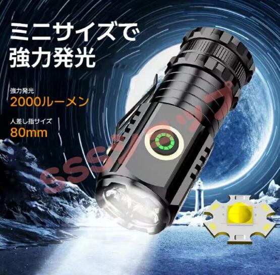 懐中電灯 小型 LED 懐中電灯 手持ち懐中電灯ハンディライト USB 充電式懐中電灯 2000ルーメン高輝度 電池残量 IPX6防水機能 停電 防災