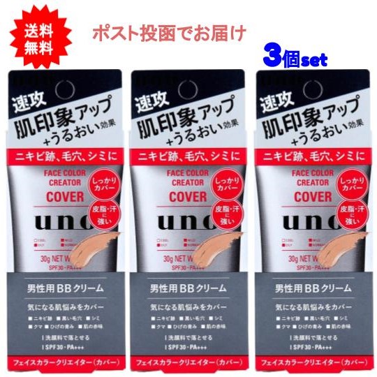 【送料無料】UNO(ウーノ) フェイスカラークリエイター 男性用BBクリーム カバー SPF30 PA+++ 30g【3個セット】