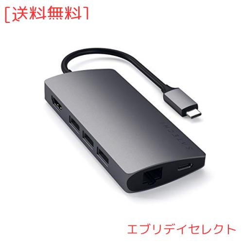 Satechi V2 マルチ USB-C ハブ 8-in-1 (スペースグレイ) 4K HDMI(60Hz), イーサネット, USBC PD充電, SDカードリーダー, USB3.0ポートx3