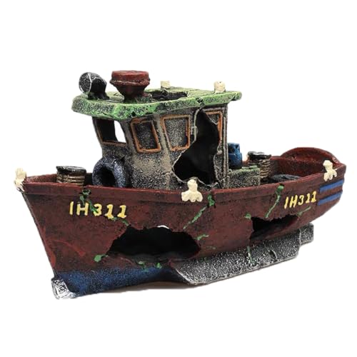 水槽用 古城 遺跡 神殿 船 沈没船 装飾 置き物 オーナメント 船 海賊船模型 水槽用飾り 水槽内アクセサリー 魚 観賞魚 熱帯魚 金魚 の 隠