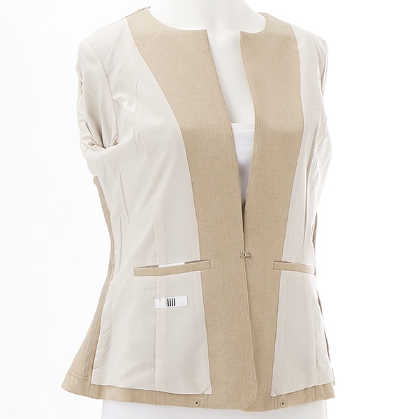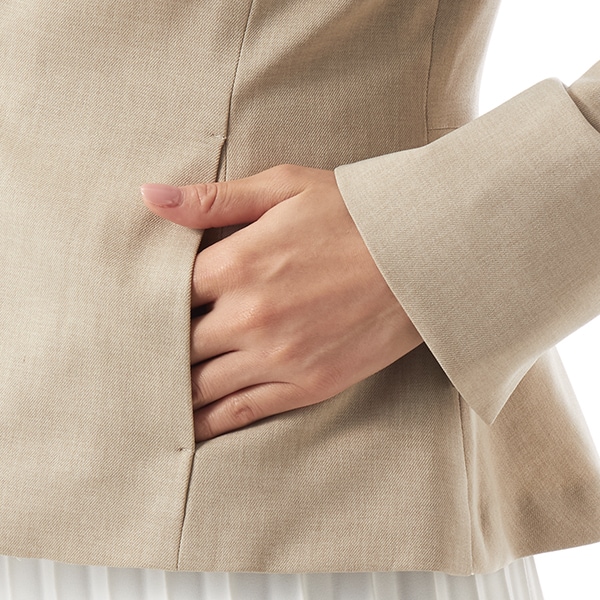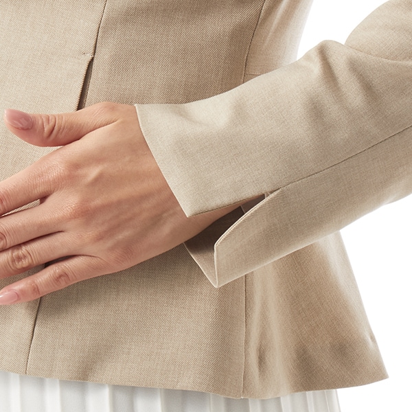 【オールシーズン】洗えるキーカラージャケット レディース ベージュ ストレッチ セレモニー